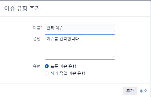 이슈 유형 추가