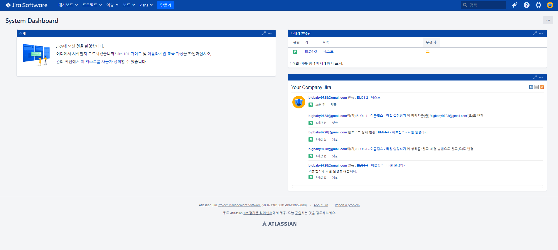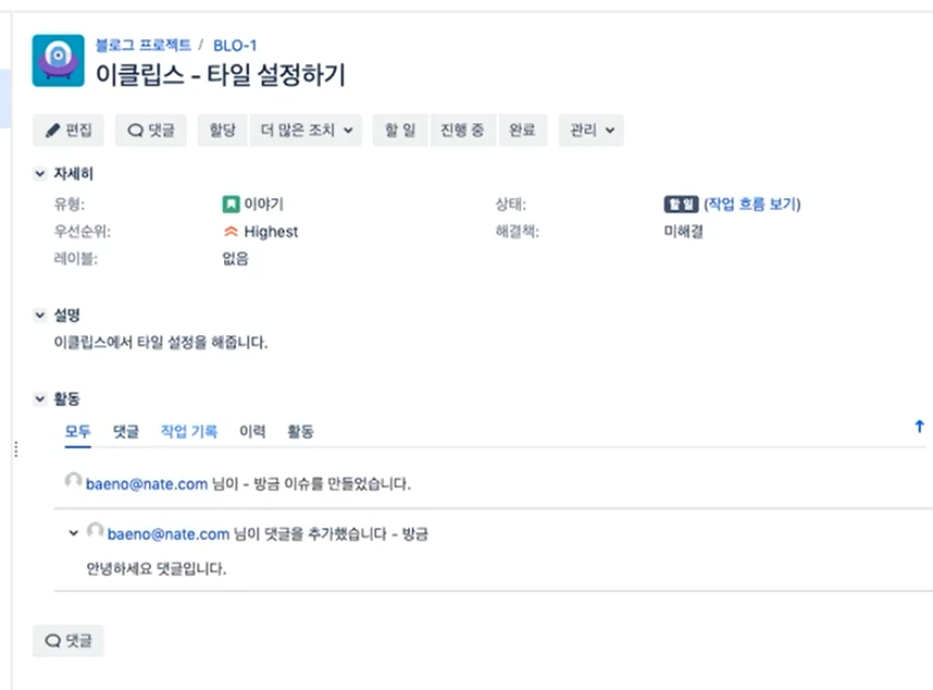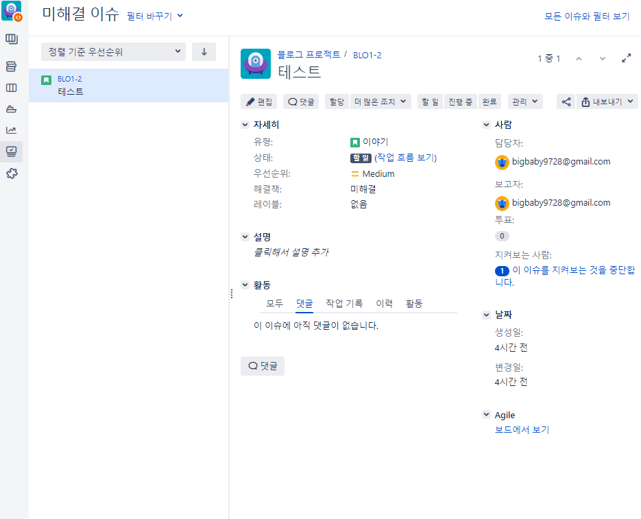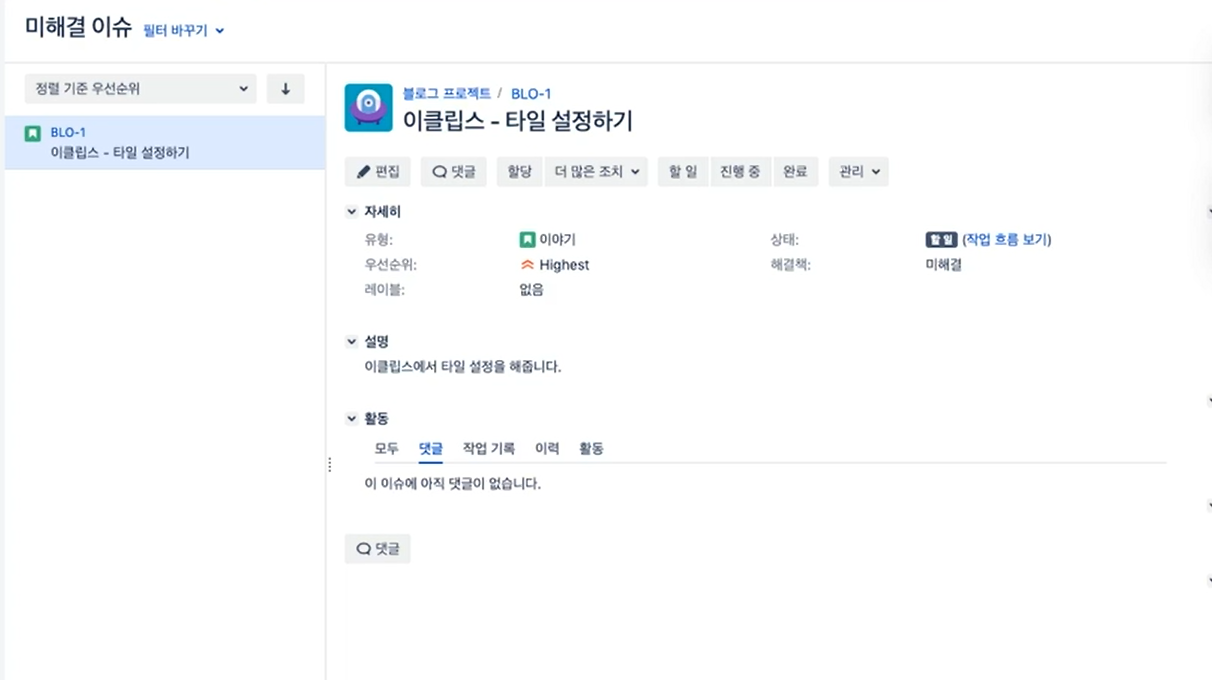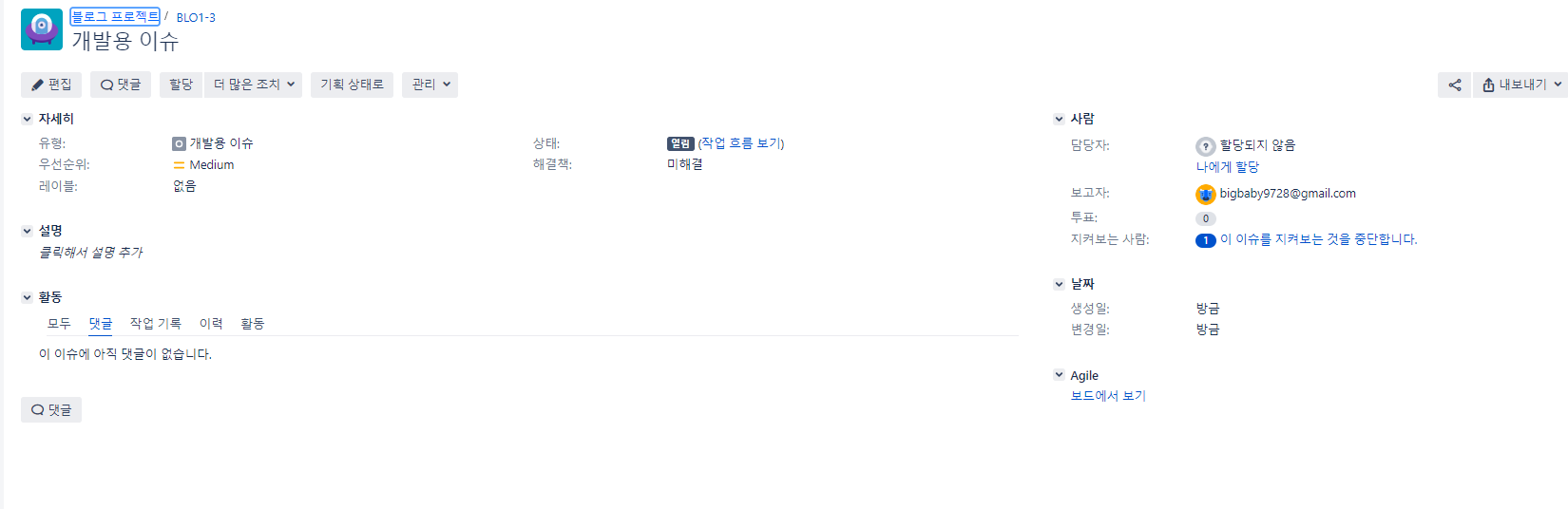 BLO-1 은 이슈 ID 이다. 자동적으로 계속 생성된다.