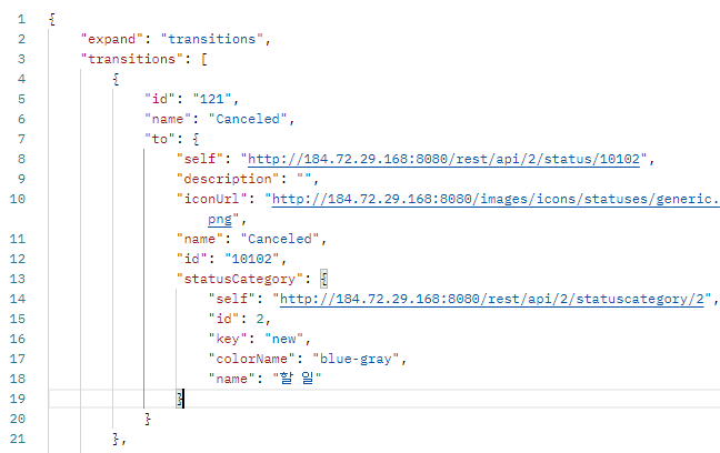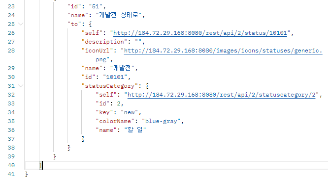 현재 이슈가 어떤 transition id를 가지는지 찾자