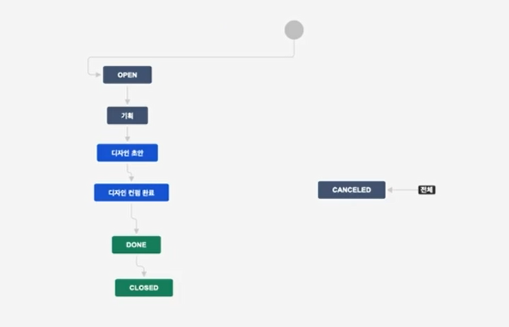 현재 canceled 나 개발전 상태로 갈 수 있다.