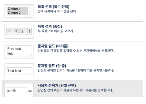 커스텀 필드의 종류