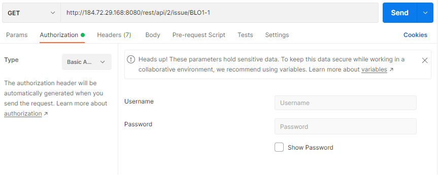 authorization 에 basic auth 로 한다.