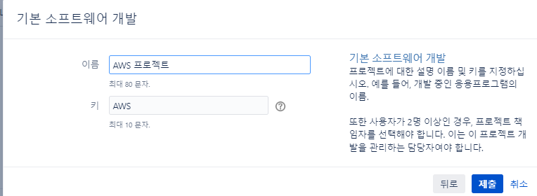 프로젝트명, 프로젝트 키