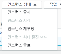 인스턴스를 선택하고 인스턴스 상태에서 중지, 종료를 할 수 있다. ( 프로젝트가 끝나면 중지->인스턴스 종료를 해준다. )