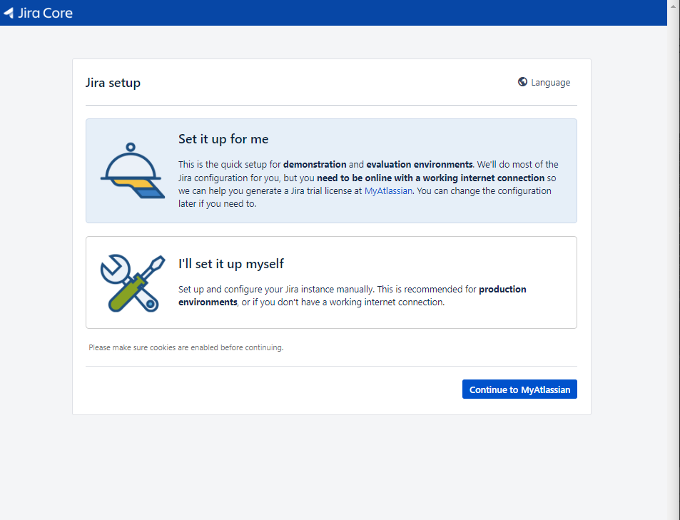 jira setup 이 뜬다.