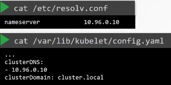 var/lib/kubelet/config.yaml 파일을 통해서 dns의 ip 와 도메인을 확인할 수 있다.