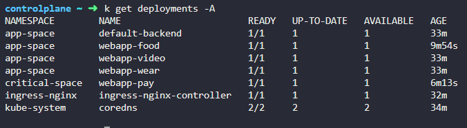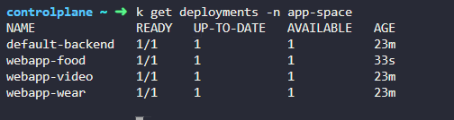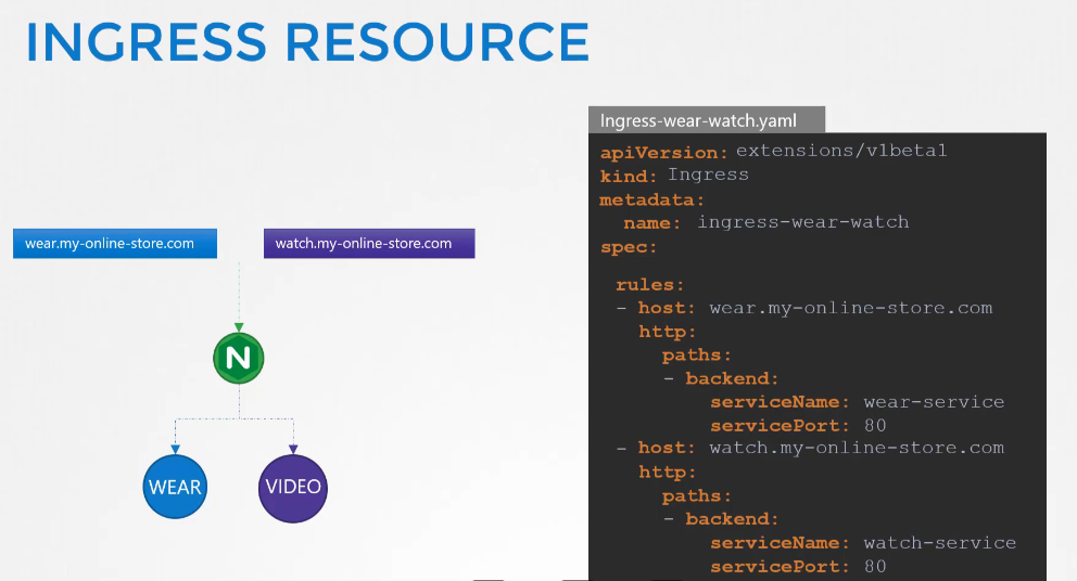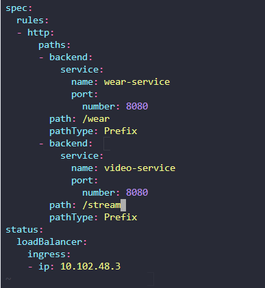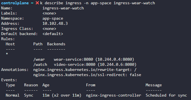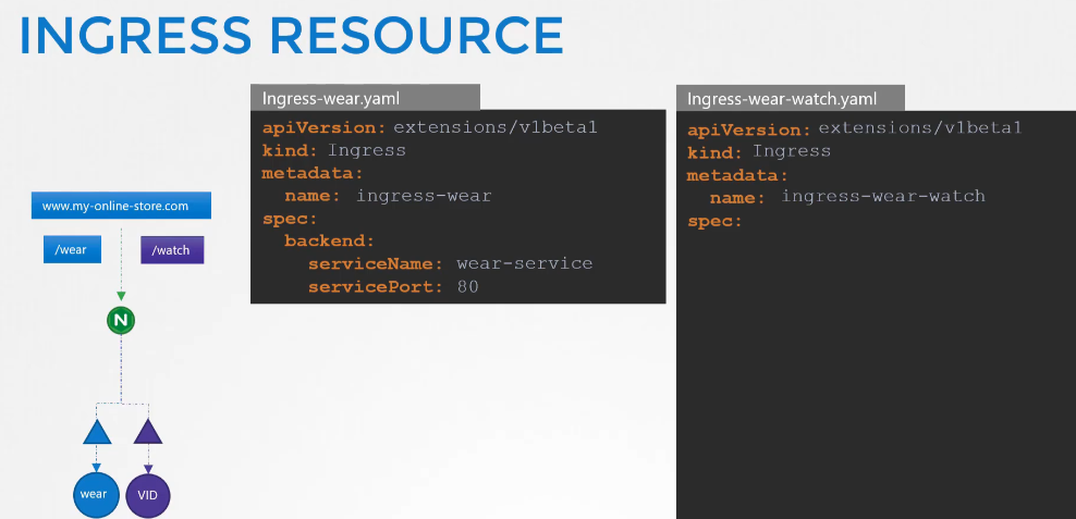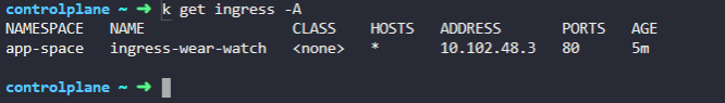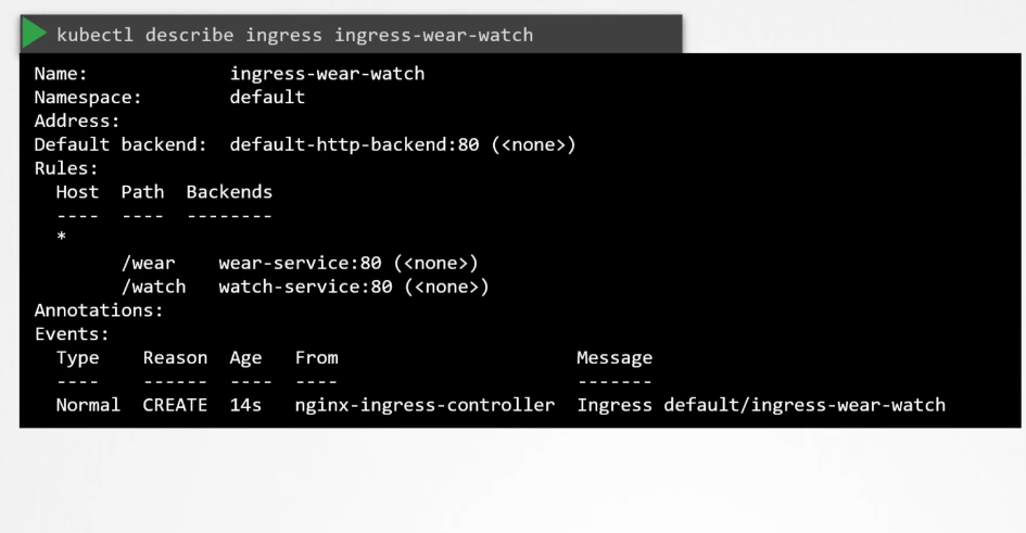 7. Create the ingress resource to make the applications available at /wear and /watch on the Ingress service.