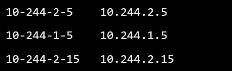 파드의 경우 ip가 .에서 - 로 변경된다.