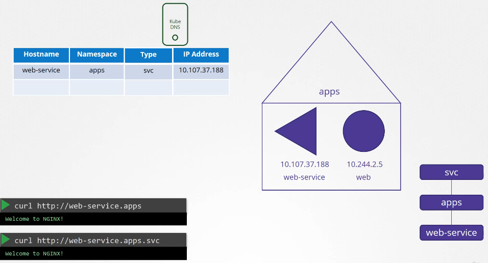 web-service.apps.svc.cluster.local 이런식으로 사용 가능하다.