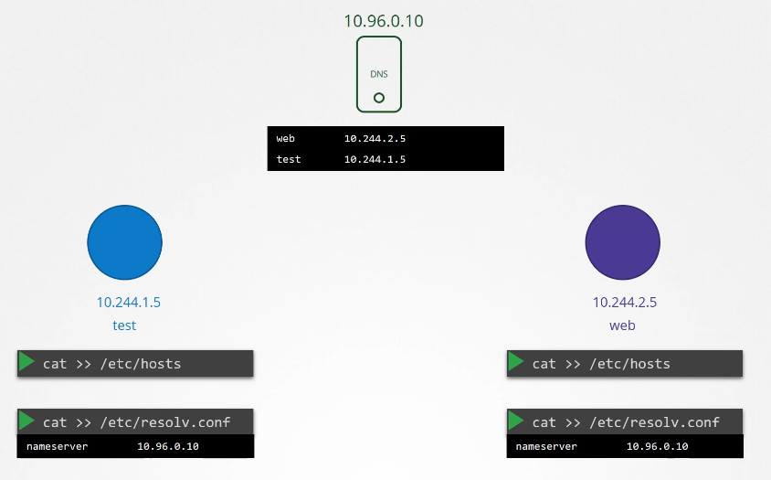 파드가 많아지면 /etc/hosts 폴더에 등록하는 것도 불가능하니까 dns에 등록한다.