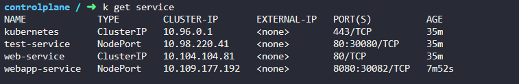 curl http://web-service 로 test에서 web으로 접속 가능하다.
