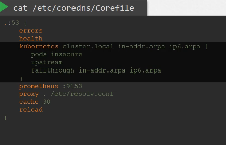 coreDNS는 corefile 이라는 구성 파일을 필요로 한다.