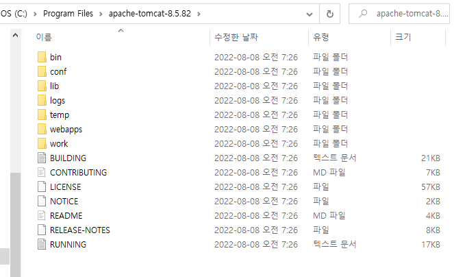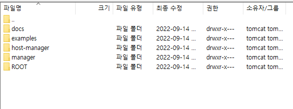 tomcat 아래에 폴더들이 생겼다.
