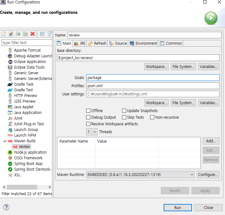 다시 run as maven build