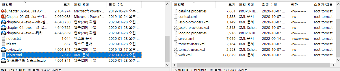 다운받은 server.xml 파일을 conf 에 덮어쓰기해야한다.