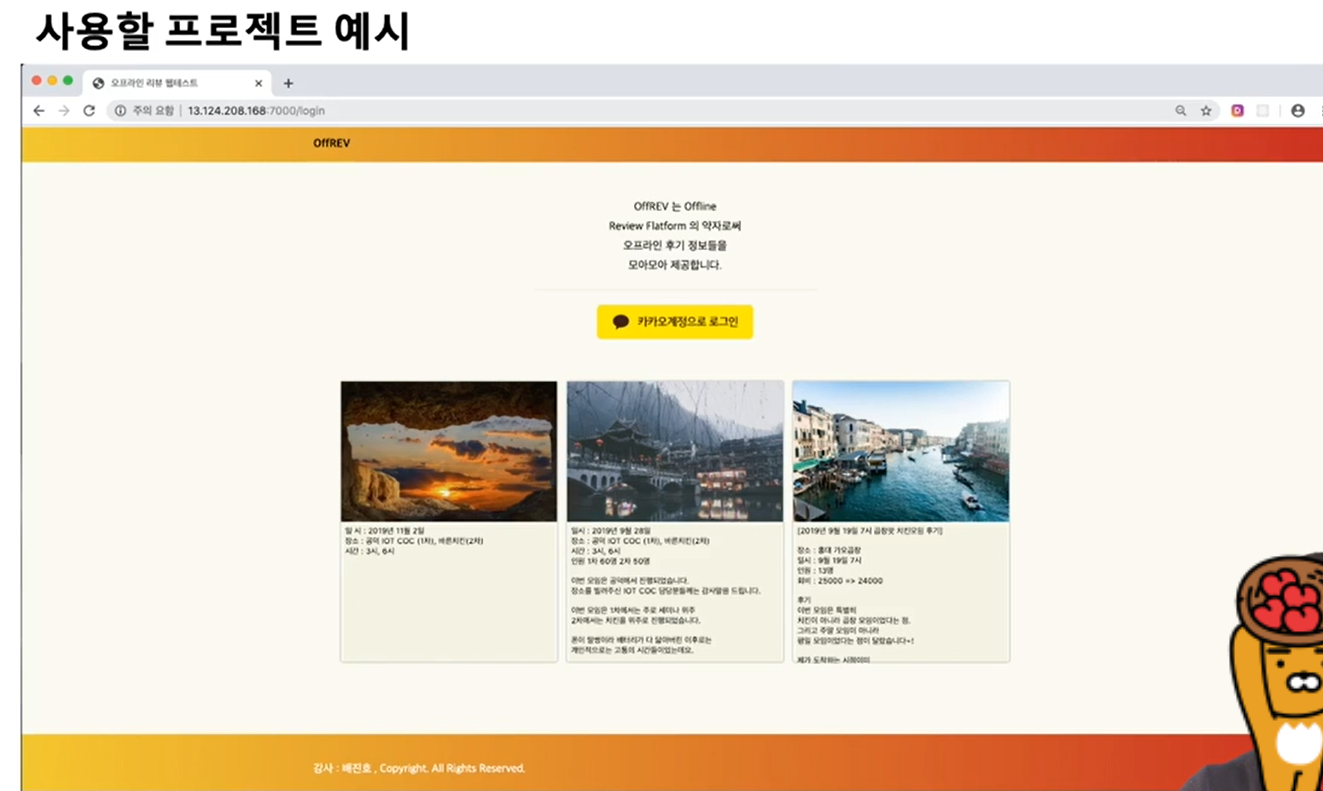 장소 리뷰 사이트 프로젝트를 사용할 거다.