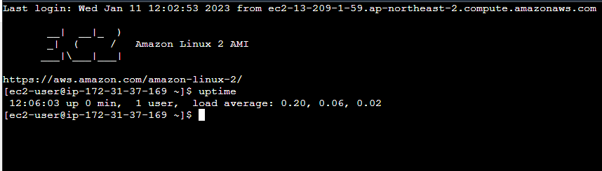 uptime 명령어로 얼만큼 인스턴스가 켜졌는지 확인하다.