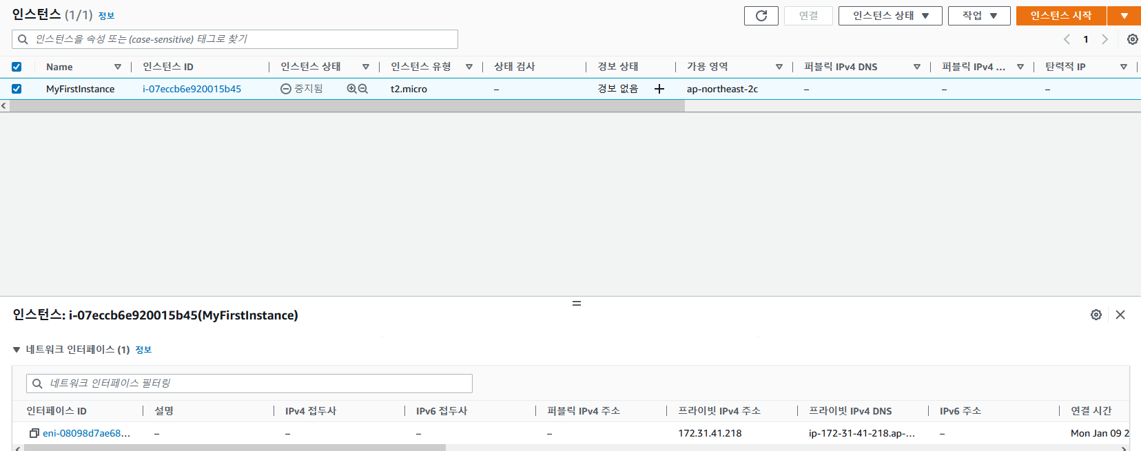 이번에 인스턴스를 중지하고 다시 켜보자