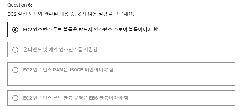 6. EC2 절전 모드와 관련된 내용 중, 옳지 않은 설명을 고르세요.