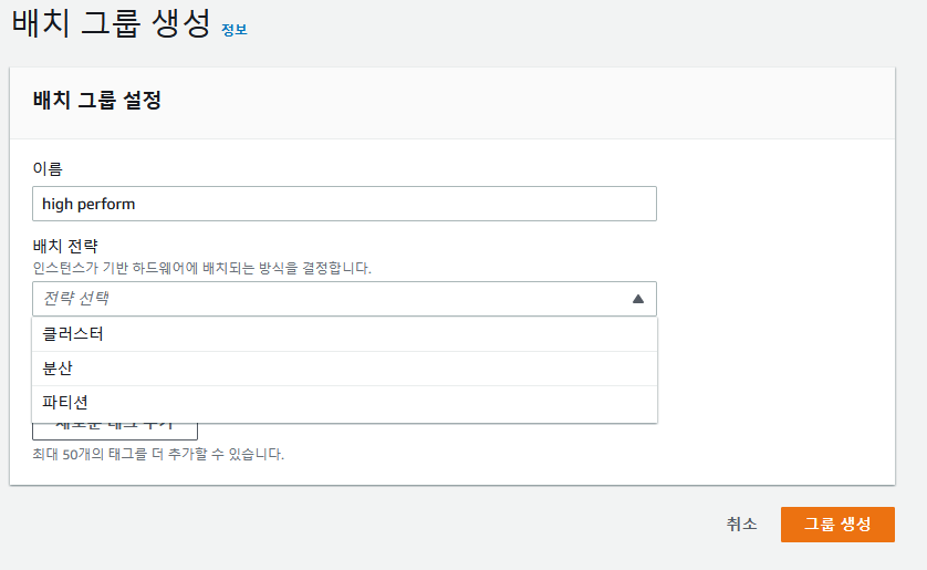 ec2 인스턴스를 만들때 고급 옵션에서 배치 그룹을 선택할 수 있다.