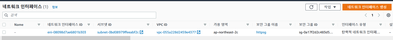 네트워크 인터페이스 생성을 통해서 eni를 생성할 수 있고