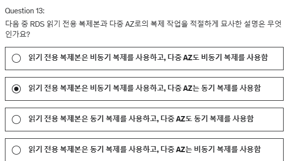 13.다음 중 RDS 읽기 전용 복제본과 다중 AZ로의 복제 작업을 적절하게 묘사한 설명은 무엇인가요?