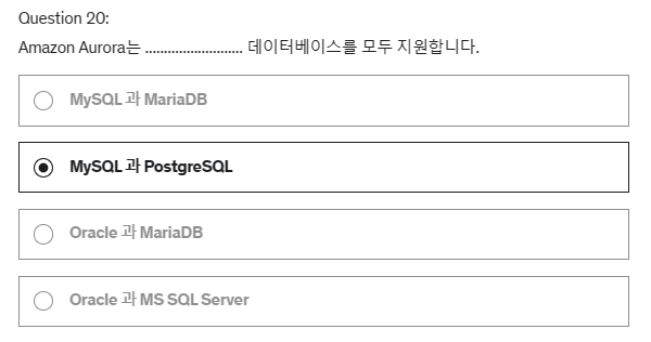20. Amazon Aurora는 .......................... 데이터베이스를 모두 지원합니다.
