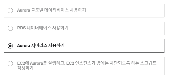 18. 프로덕션에서 실행 중인 한 애플리케이션이 Aurora 클러스터를 데이터베이스로 사용하고 있습니다. 여러분의 개발 팀은 필요할 경우 많은 양의 워크로드를 수행할 수 있는, 스케일이 축소된 애플리케이션에서 애플리케이션의 버전을 실행하려 합니다. 애플리케이션은 대부분의 시간 동안 사용되지 않습니다. CIO는 여러분에게 팀을 도와 비용을 최소화하는 동시에 이를 달성해 줄 것을 요청했습니다. 어떤 방법을 사용해야 할까요?