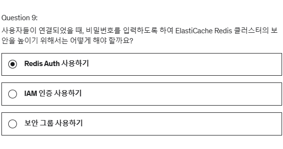 9. 사용자들이 연결되었을 때, 비밀번호를 입력하도록 하여 ElastiCache Redis 클러스터의 보안을 높이기 위해서는 어떻게 해야 할까요?