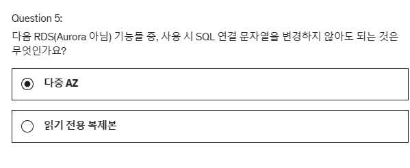 5.다음 RDS(Aurora 아님) 기능들 중, 사용 시 SQL 연결 문자열을 변경하지 않아도 되는 것은 무엇인가요?