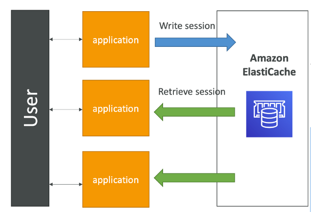 세션 데이터를 ElastiCache에 저장하는 방법은 서로 다른 EC2 인스턴스들이 필요 시 사용자의 상태를 회수할 수 있게끔 하기 위해 흔히 사용됩니다.