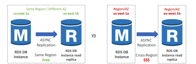 하지만 읽기 전용본이 다른 리전일 경우 전송비가 존재한다.