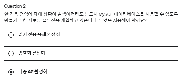 2. 한 가용 영역에 재해 상황이 발생하더라도 반드시 MySQL 데이터베이스을 사용할 수 있도록 만들기 위한 새로운 솔루션을 계획하고 있습니다. 무엇을 사용해야 할까요?