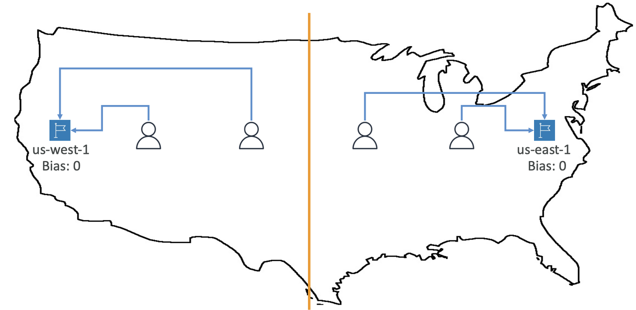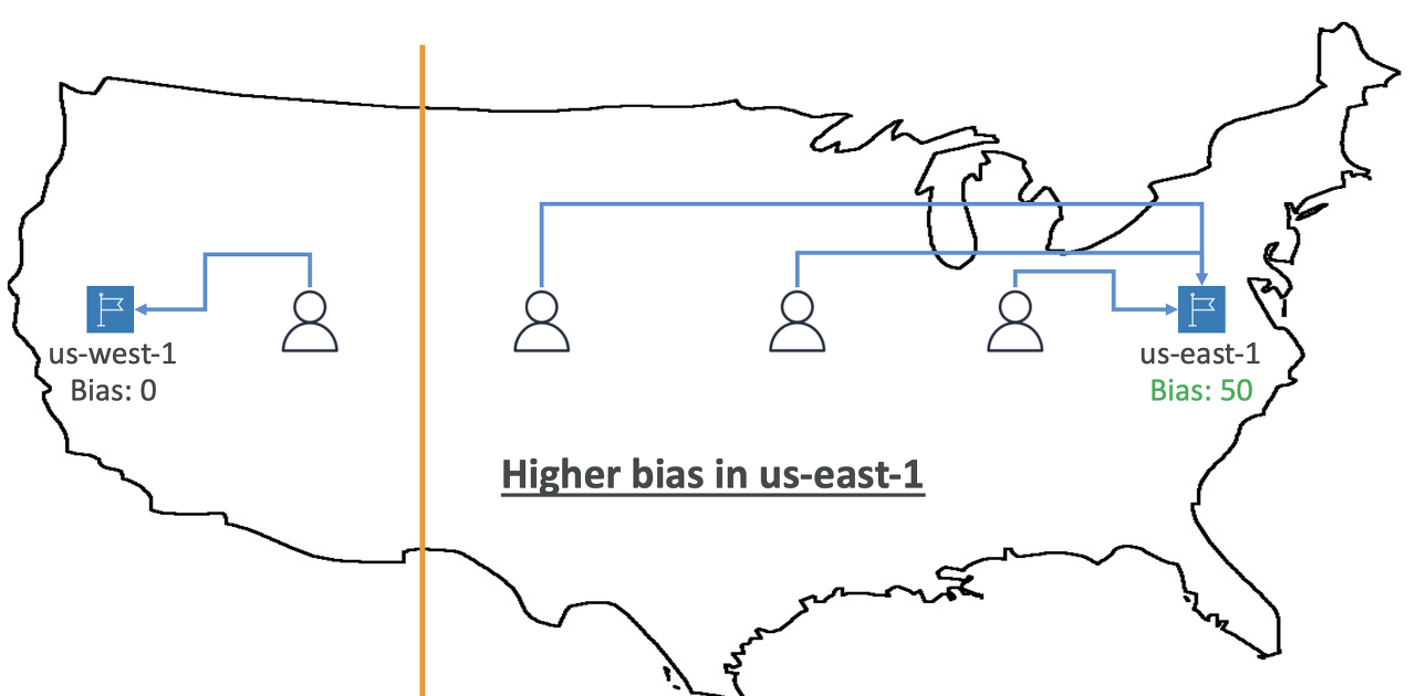 편향성을 지정하면 유저의 트래픽을 특정 리전으로 옮길 수 있다.