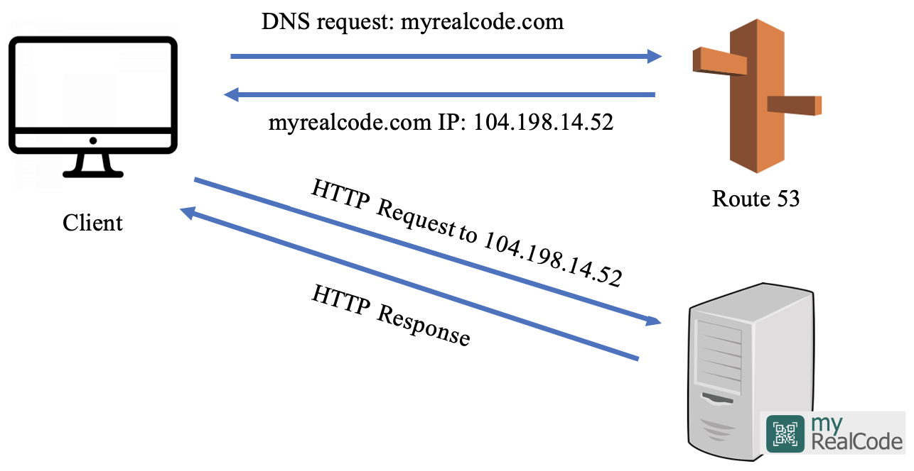 Route53 역시 도메인 이름 레지스트로 도메인 이름을 myrealcode.com 으로 등록한다.