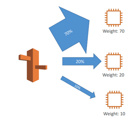 가중치 기반 라우팅 정책을 사용하면 가중치(예: 백분율)를 기반으로 트래픽의 일부를 리다이렉트할 수 있습니다. 트래픽의 일부를 애플리케이션의 새로운 버전으로 보내는 방식은 흔히 사용되는 방식입니다.