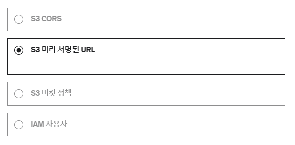 8. 점점 늘어나고 있는 연결된 사용자들의 목록에 임시 URL을 제공하여, 이들이 특정 로케이션에서 S3 버킷으로 파일 업로드를 수행할 수 있도록 허가하려 합니다. 무엇을 사용해야 할까요?