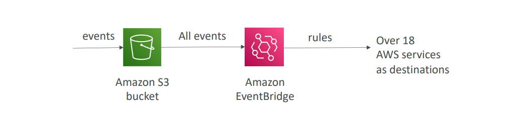 Eventbridge는 고급 필터링을 지원한다. ( 메타 데이터, 객체 크기, 이름 등으로 필터링 가능)