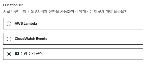 10. 서로 다른 티어 간의 S3 객체 전환을 자동화하기 위해서는 어떻게 해야 할까요?