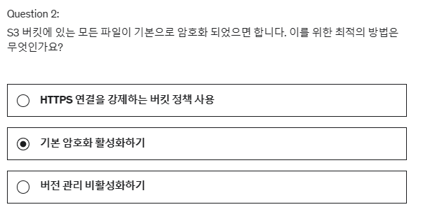 2. S3 버킷에 있는 모든 파일이 기본으로 암호화 되었으면 합니다. 이를 위한 최적의 방법은 무엇인가요?