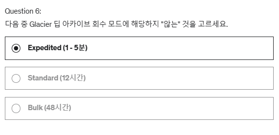 6. 다음 중 Glacier 딥 아카이브 회수 모드에 해당하지 "않는" 것을 고르세요.