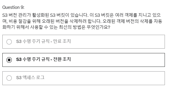 9. S3 버전 관리가 활성화된 S3 버킷이 있습니다. 이 S3 버킷은 여러 객체를 지니고 있으며, 비용 절감을 위해 오래된 버전을 삭제하려 합니다. 오래된 객체 버전의 삭제를 자동화하기 위해서 사용할 수 있는 최선의 방법은 무엇인가요?