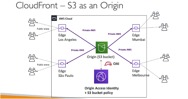 오리진 액세스 신분 (OAII)로 클라우드 프론트와 S3 버킷 사이의 보안을 강화해준다.