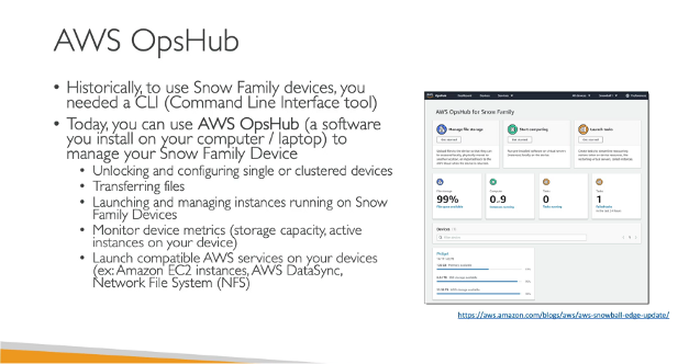 파일 전송이 가능해지고 Snow 장치에서 실행되는 Ec2 인스턴스를 시작 및 관리할 수 있게 된다.