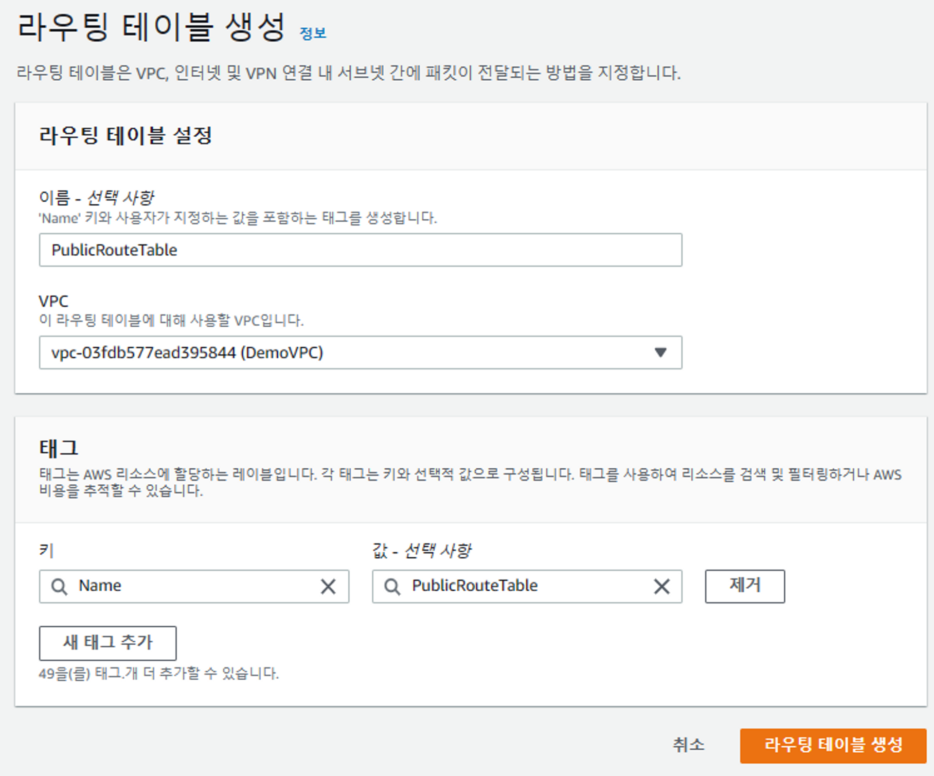 라우팅 테이블 생성