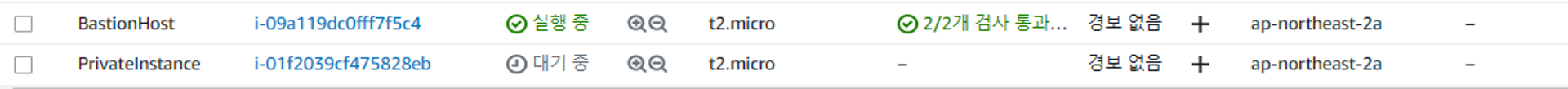 - 배스천 → 사설 서브넷의 EC2 에 접속 가능
