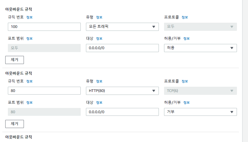 80 번으로 http 접속을 거부하는 규칙을 추가해보자
